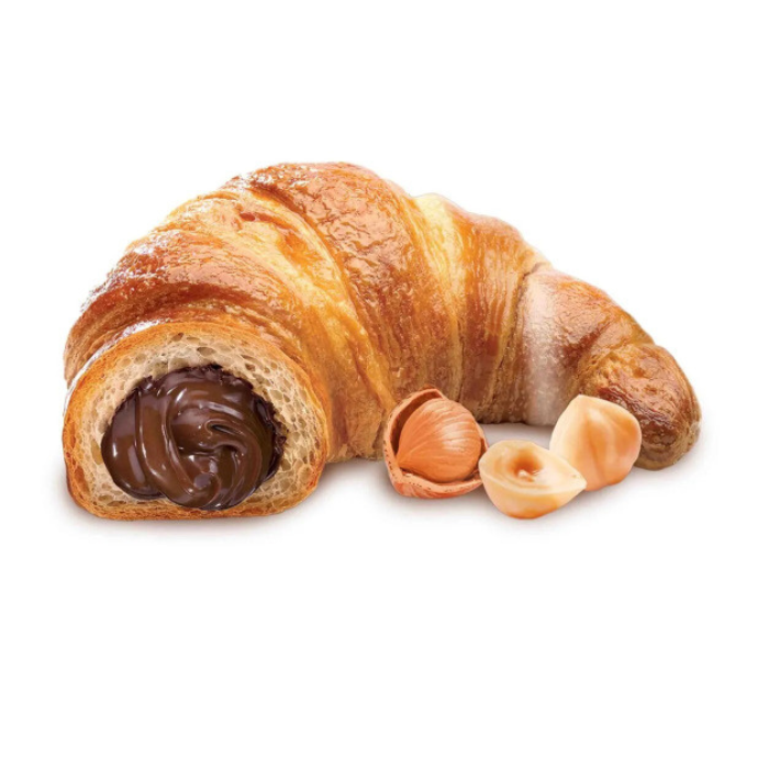 Croissant relleno de crema de avellana. Presentación caja de 24 unidades.